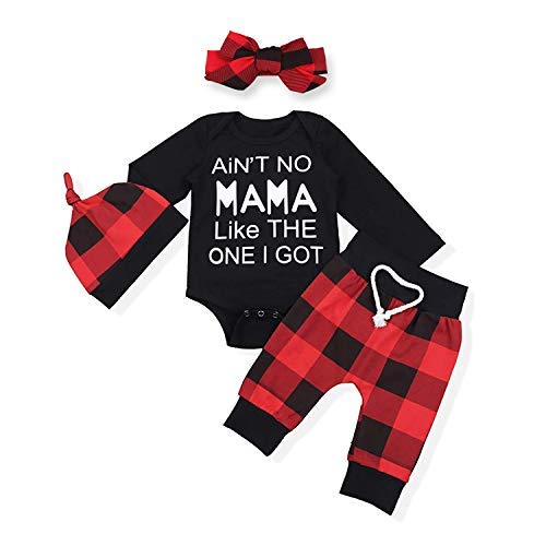 Buy Konight Newborn Infant Baby Boys Girls Romper Outfit Long Sleeve Cute Letter Jumpsuit Plaid Pants Spring Winter Clothes Set Black 0 3 Months At Amazon In